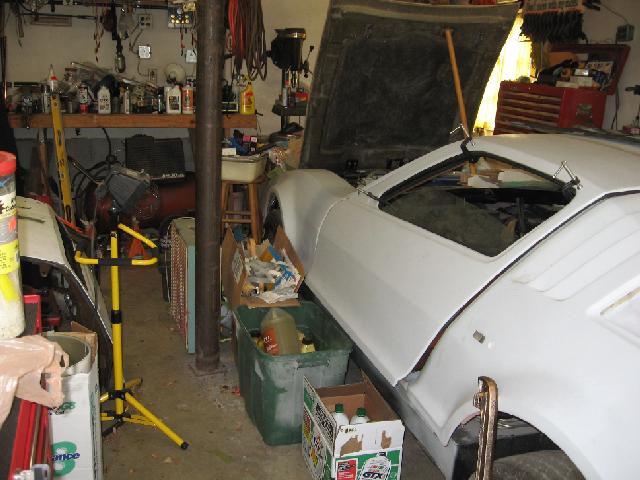 Friday, June 6th, ScottE, Dennis and I start to tear down the old shed. We managed to finish that Friday evening. Next problem was that 3 trees had grown up around the old shed. So Saturday morning we cut the 3 trees down. One of them growing through the old chassis of my '65 Morgan. Over the next 2 weeks I cut up the trash from the trees and put them out for the garbage.