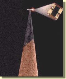 In this photo, the Hall generator is shown with a pencil point for scale.